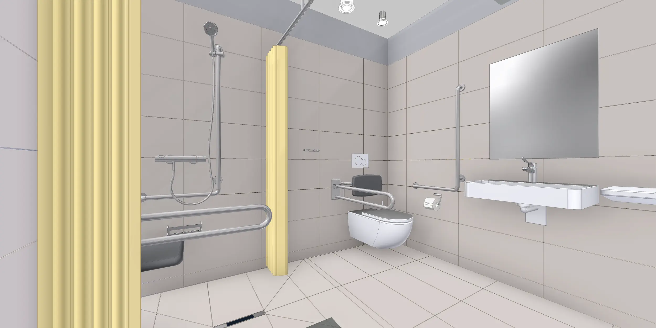 Beschläge und Zukaufteile sin ebenfalls im Modell enthalten um eventuelle Kollisionen und Probleme aufzudecken.